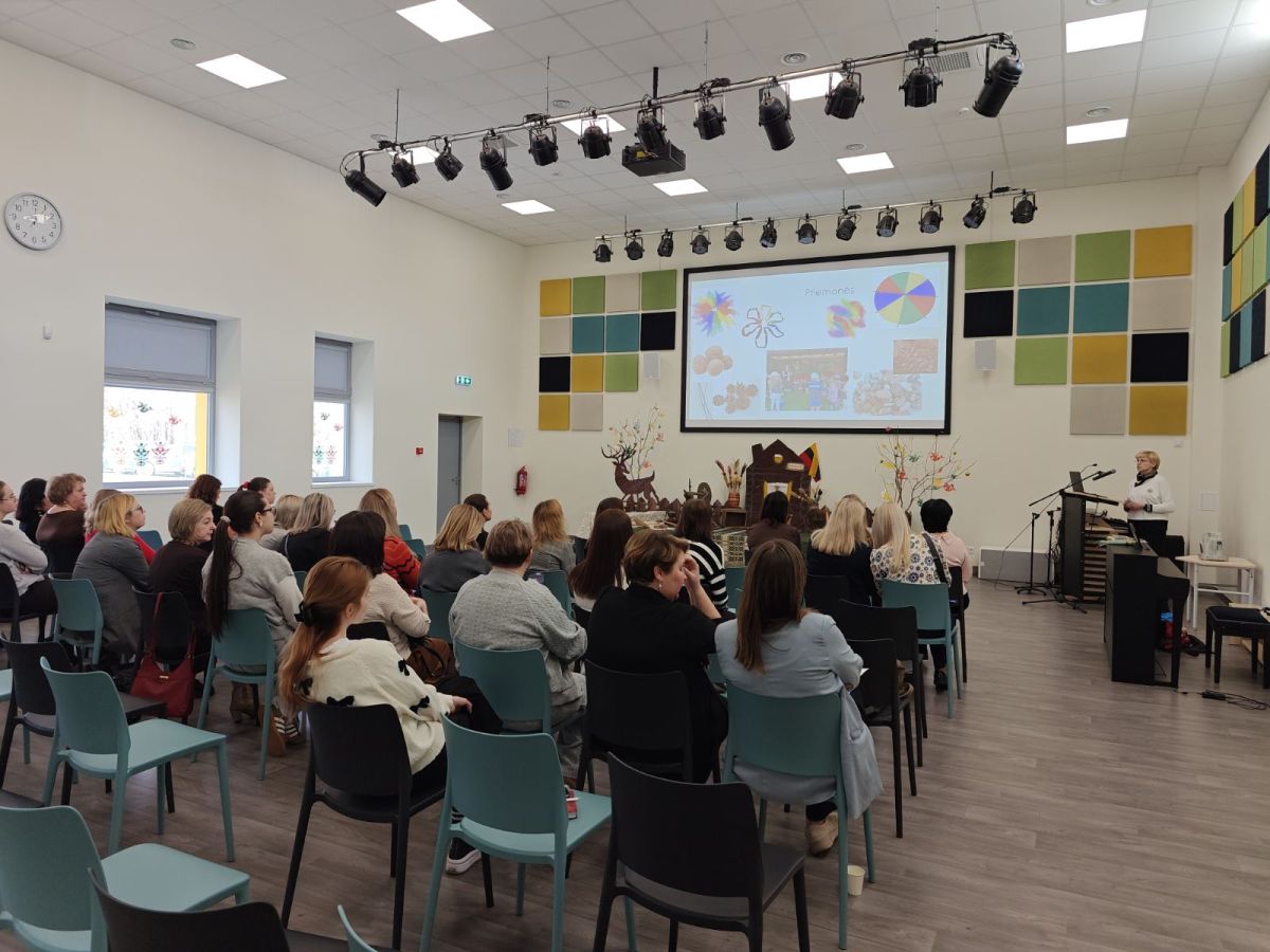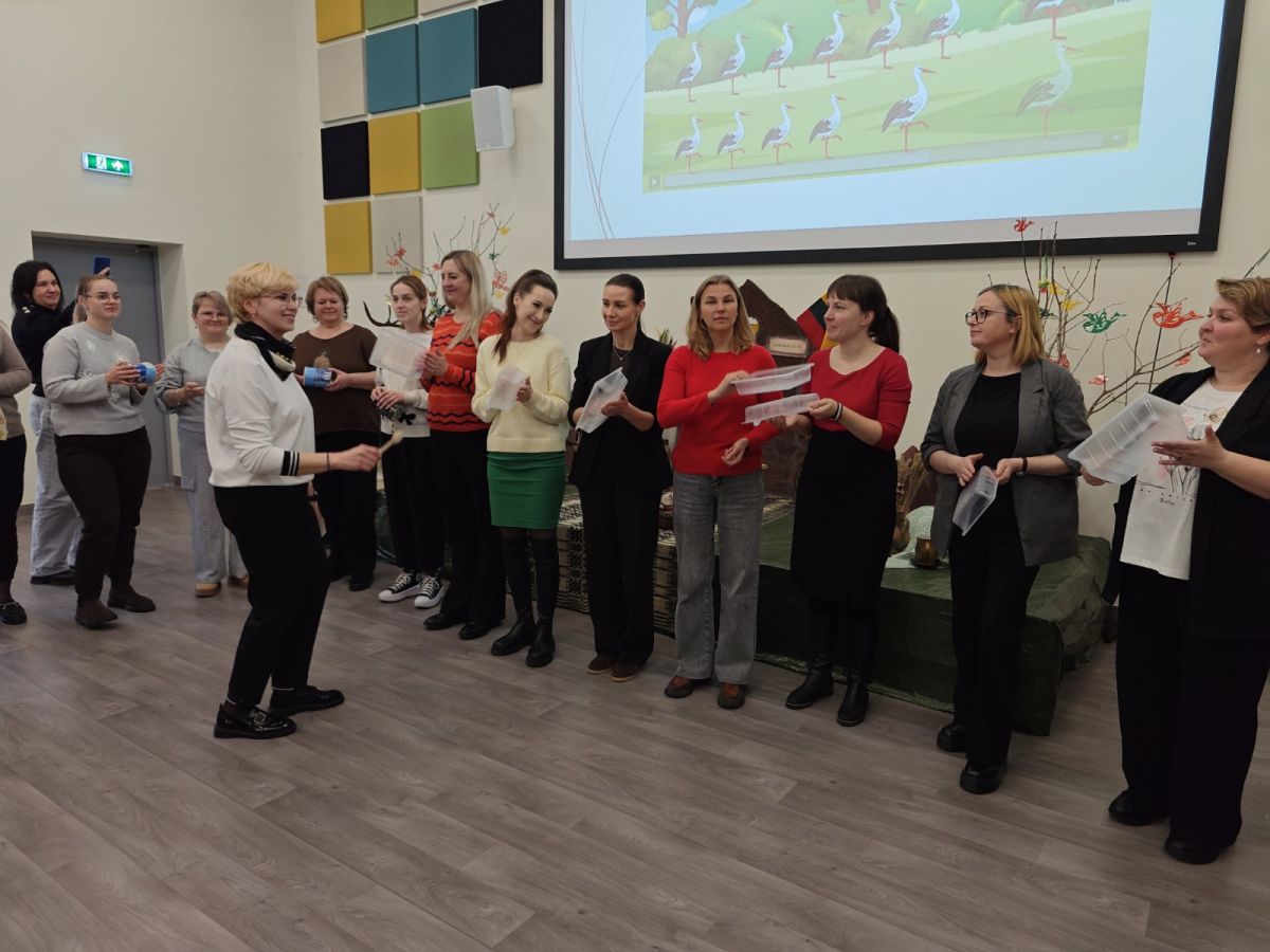 Kovo 20 d. Vilniaus r. Didžiosios Riešės vaikų lopšelyje-darželyje vyko konferencija „Per ritmą ir judesį – į taisyklingą kalbą“. Renginio metu mūsų lopšelio-darželio meninio ugdymo (muzikos) mokytoja metodininkė Edita Staniulionienė dalijosi gerąja darbo patirtimi. Mokytoja pristatė praktinę veiklą tema „Garsų kelionė su ritmu“, kurioje atskleidė ritmo ir judesio svarbą lavinant vaikų kalbinius įgūdžius.