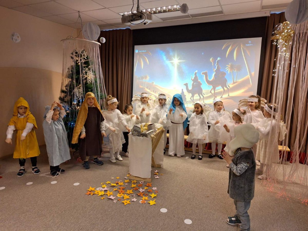 Prie prakartėlės vaikai ir darbuotojai kartu „nuaudė“ gerų darbų bei pasižadėjimų kilimą iš žvaigždučių, o skambios kalėdinės giesmės pripildė salę pakilios nuotaikos. Po jaukios dalijimosi kalėdaičiais akimirkos šventinė eisena nuvingiavo lopšelio-darželio koridoriais. Karaliai kreida paženklino duris simboliniu užrašu K+M+B+2026, linkėdami, kad Kristaus palaima visus metus lydėtų šiuos namus.